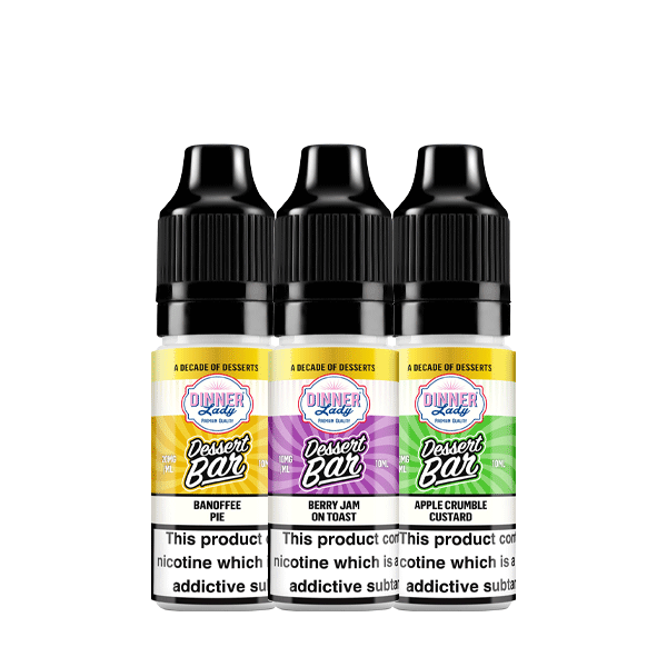Dinner Lady Dessert Bar nic salts are crafted in the UK using high-quality ingredients to ensure a smooth throat hit and excellent flavour clarity. Designed for use with pod kits and refillable devices, they provide fast nicotine absorption and a reliable all-day vape experience.